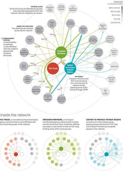 An investigation by ProPublica found that Concerned Veterans for America submits its IRS filings under the name Vets for Economic Freedom Trust. Those documents list former Koch Industries managing director Wayne Gable as a trustee.[4]